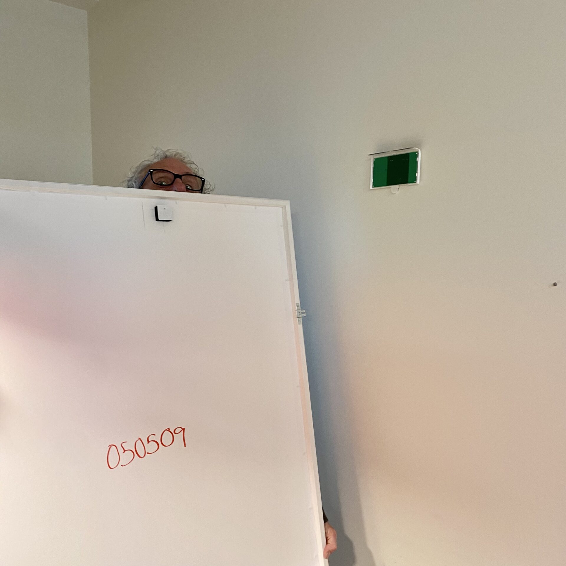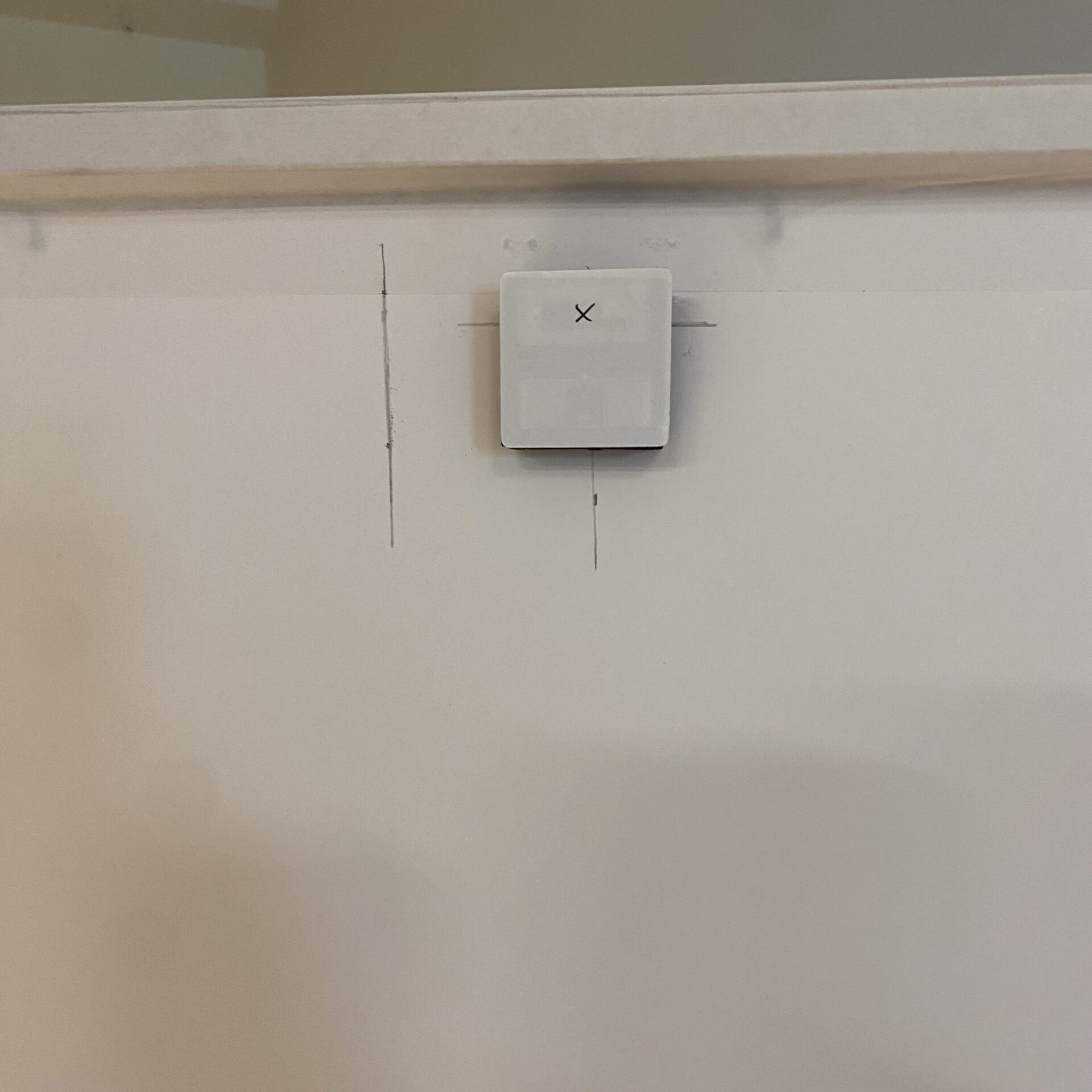 - Så här ser det ut när tavlan häktas av. Enheten är fastklistrad på väggen.