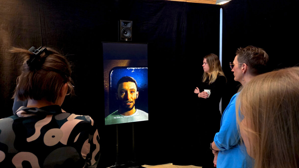 Under förmiddagen fick vi ta del av en forskningsbaserad utställning där AI-genererad ljud och bild visade konsekvenserna av våra dagliga beslut. Utställningen, som visades för första gången på COP28, presenterade fyra framtidsscenarier kopplade till klimat, social hållbarhet och geopolitik: business as usual, collapse, constrain och transform.